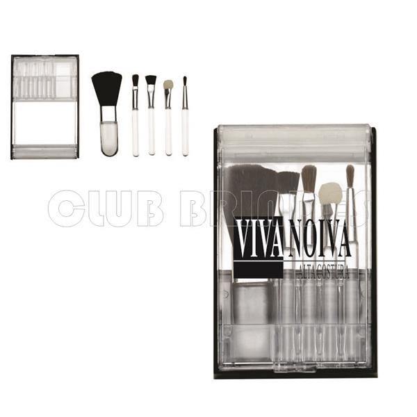 Kit Pincel de acrílico com 5 peças e espelho. Contém: pincel para blush, pincel para corretivo, pincel para sombra, pincel para lábios e pincel para sobrancelha. Gravação da logomarca em 1 cor já inclusa.