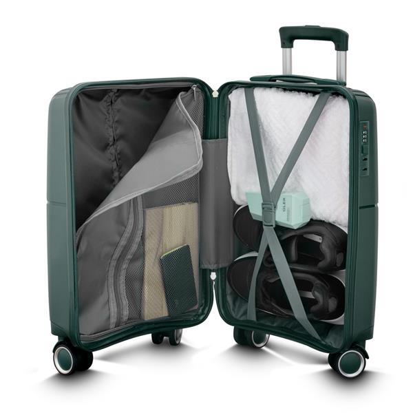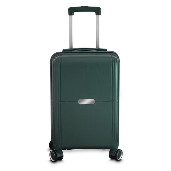 Mala viagem pequena em Polipropileno com interior em 210D. Abertura com zíper para acesso ao interior da mala e forro poliéster. Sistema de carrinho de aço com quatro rodas de 360 graus. Cadeado com senha/segredo e possui cadeado TSA. Alça de mão na parte superior. Acompanha 2 plaquinhas (7,8x2,6 cm) em inox para personalização. Gravação da logomarca a laser já incluso.
